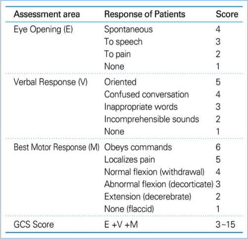 Eye Opening (4), Verbal Response (5), Best Motor Response (6)
