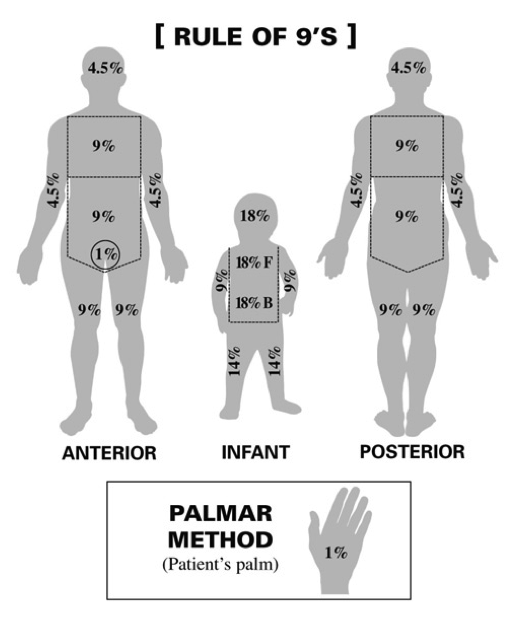 >10% BSA in children or