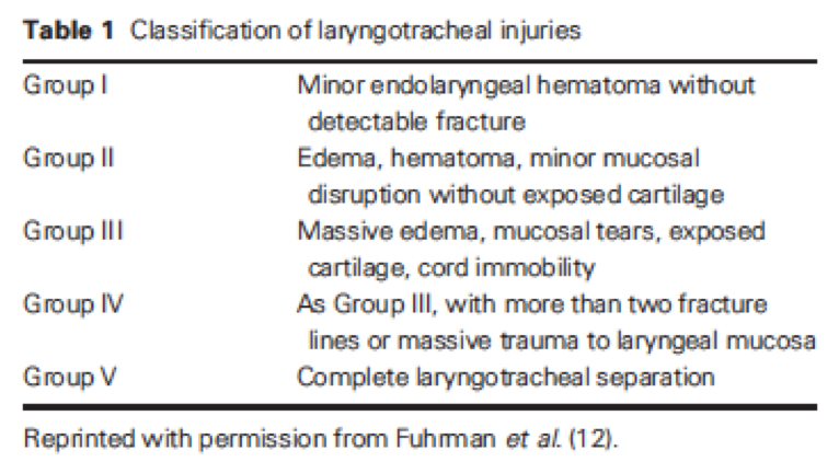 Airway management in laryngotracheal injuries from blunt neck trauma in children. Pediatric Anesthesia 2015.