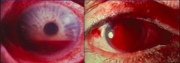 Une complication majeure d’un hyphéma est un resaignement et on garde les patients au repos pendant une période d’une semaine.