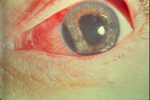 Le traitement comprend des gouttes cycloplégiques pour éliminer le spasme du corps ciliaire et la photophobie, ainsi que des onguents antibiotiques et une analgésie systémique.