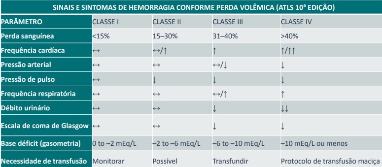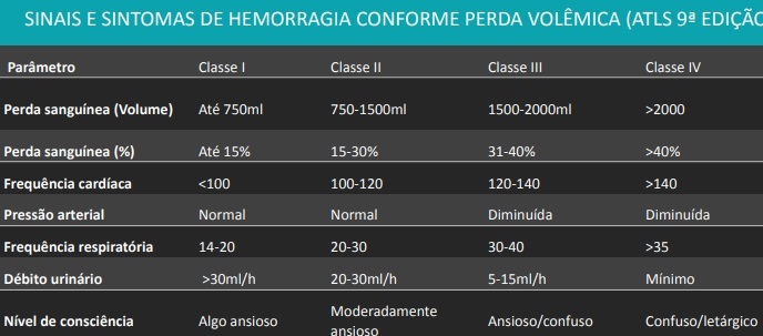 Classificação do choque pelo ATLS 10ª edição