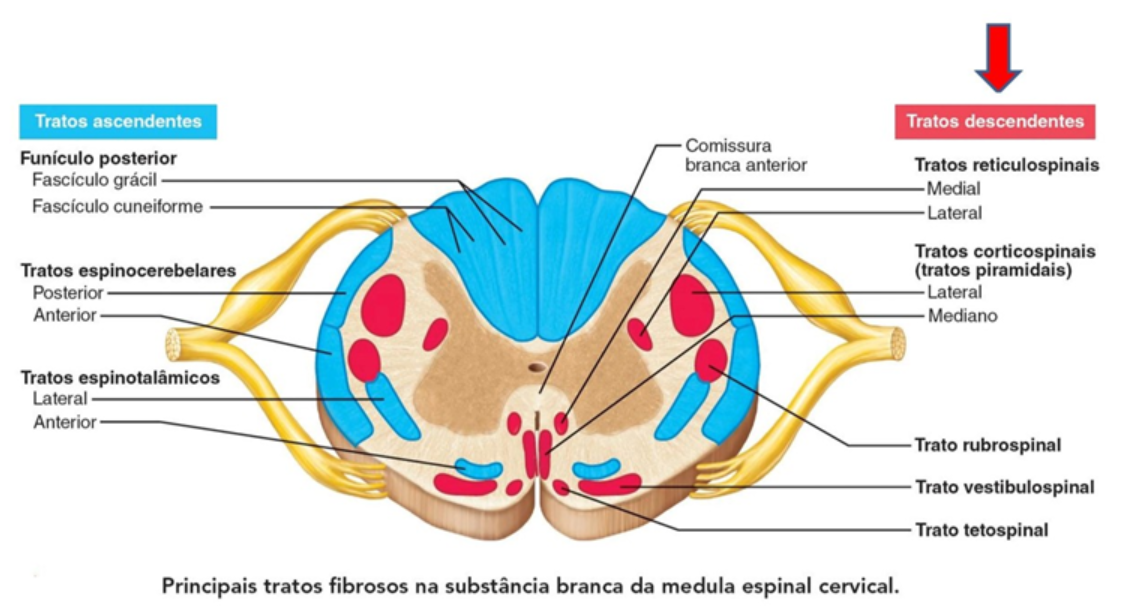 Tratos corticoespinhal, espinotalâmico e colunas dorsais