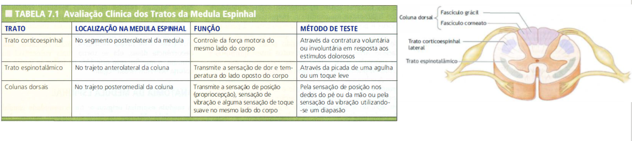 Quais tratos que integram a medula espinhal podem ser avaliados clinicamente ?