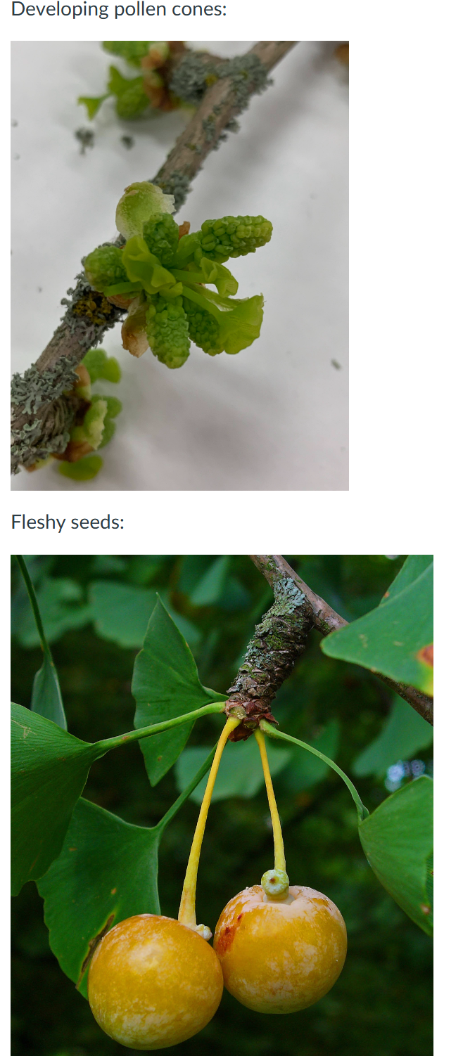 Ginko Biloba Reproduction pollen cones and fleshy seeds