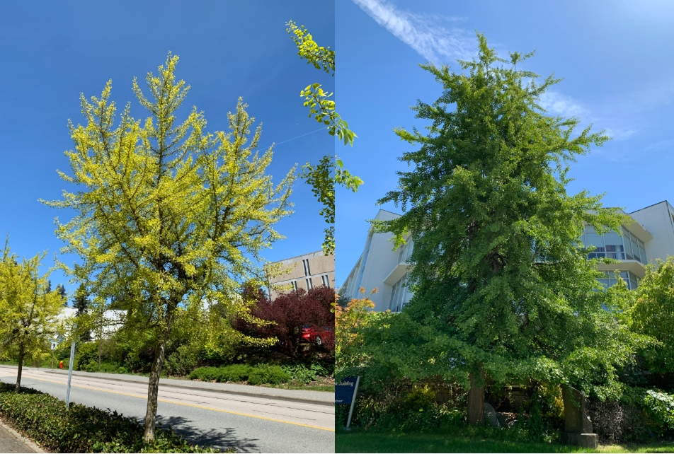 Ginko biloba foliage and trees