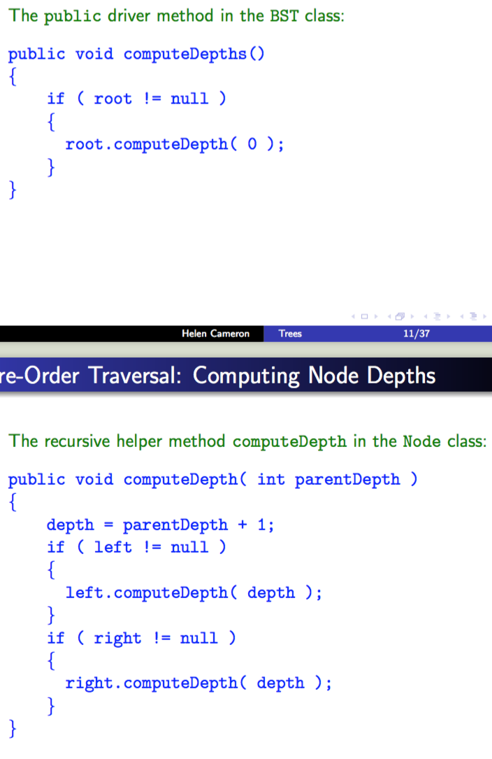 In general, how would you compute a node’s depth with a pre-order traversal?