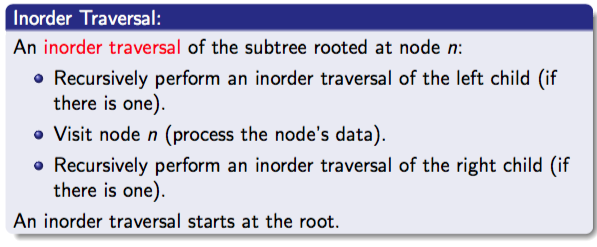 The output of an inorder traveral of a binary search tre is the values of the tree in sorted order: