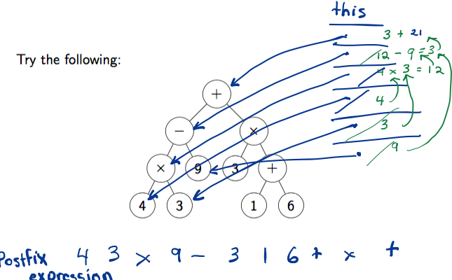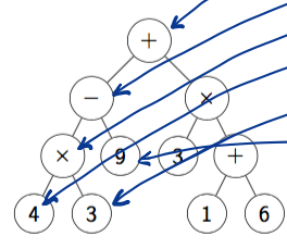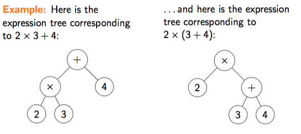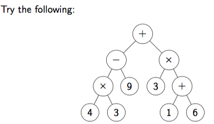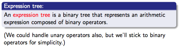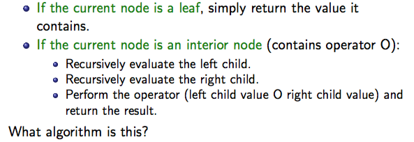 In general what is the obvious recursive algorithm to evaluate an expression tree, beginning at the root?