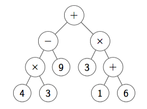 (((4 x 3) - 9) + (3 x ( 1 + 6)))