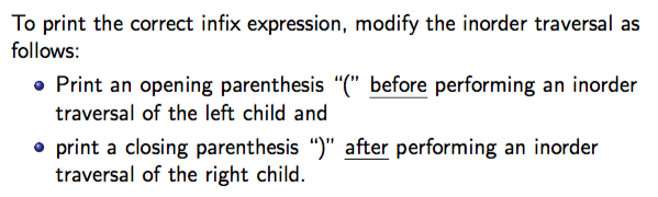 How can you perform an inorder traversal of an expression tree and ensure you print the correct parentheses?
