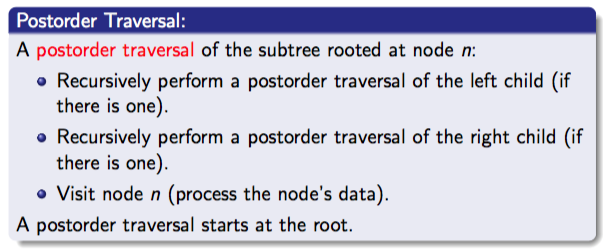 Use a post-order traversal when the task you are performing at a node depends on the results of the task performed at its children