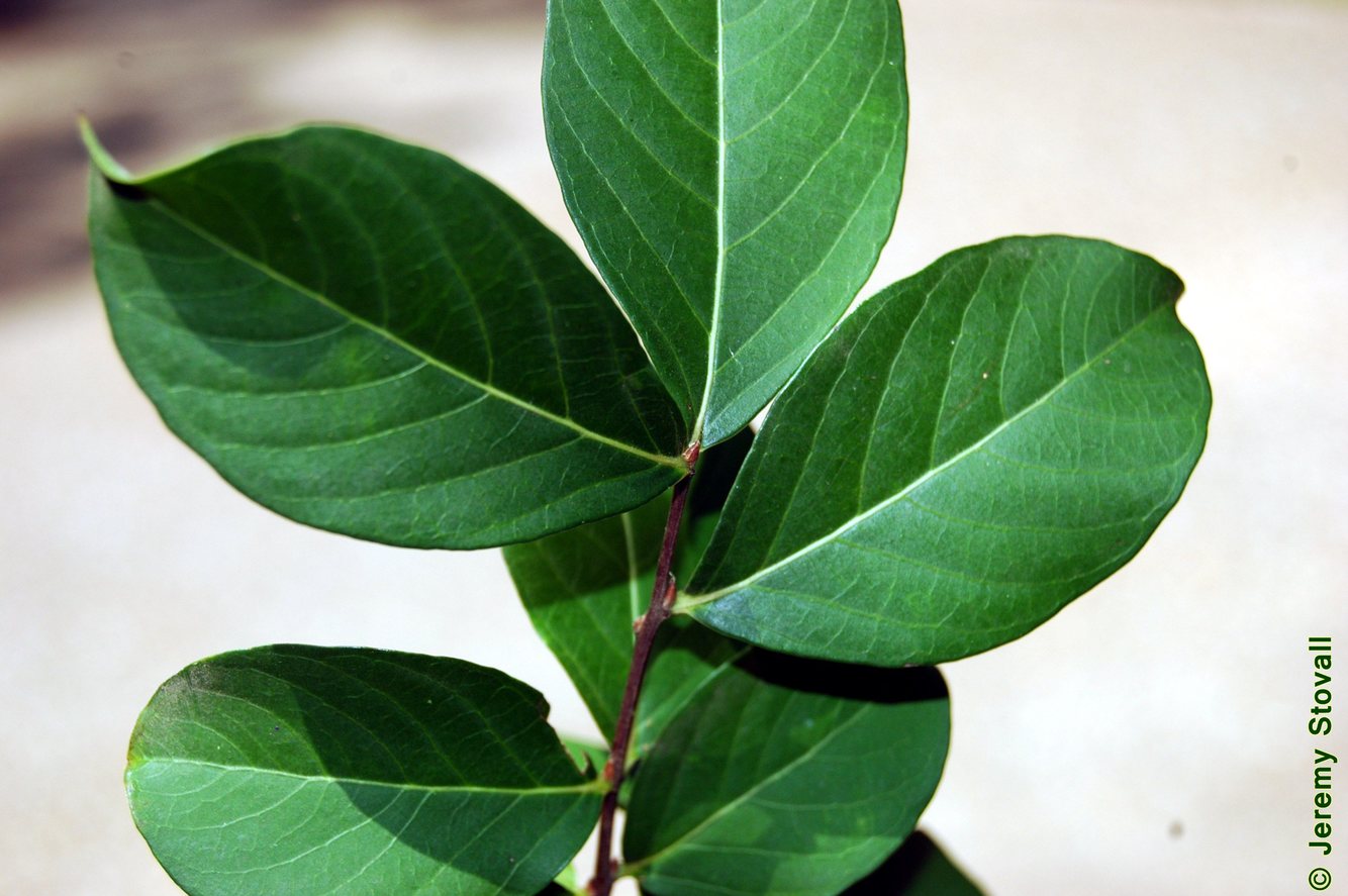 Shrub with alternate, simple, purplish leaves with parallel veins