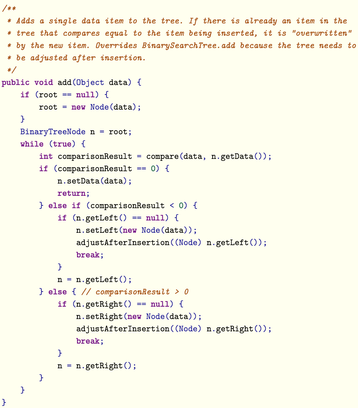 A binary search tree (BST) is a binary tree where each node has a Comparable key (and an associated value) and satisfies the restriction that the key in any node is larger than the keys in all nodes in that node’s left subtree and smaller than the keys in all nodes in that node’s right subtree.