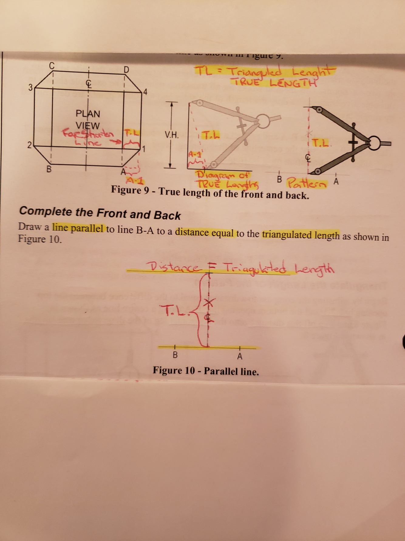 2. Draw Diagram of True Lenghts. V.H is vertical leg. Horzontal leg step off distance between B-A and 2-1.