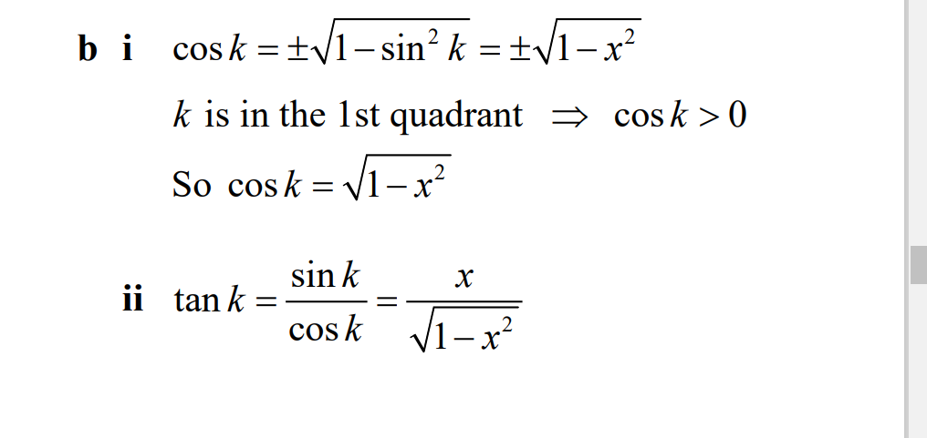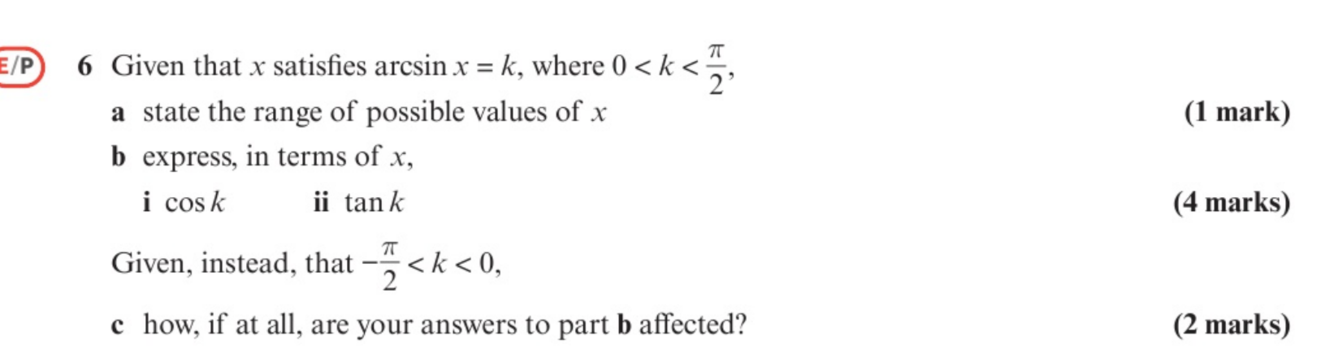 eg arcsinx=k