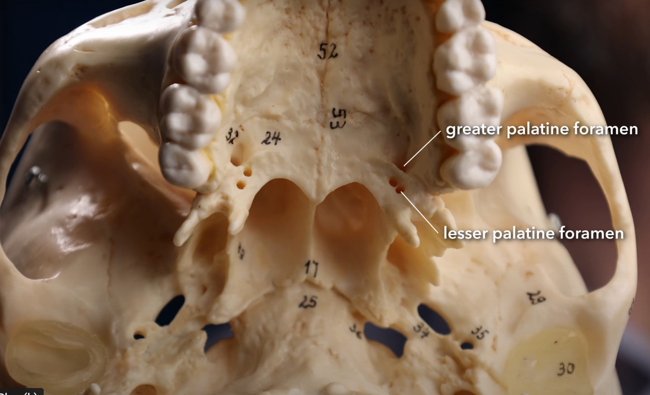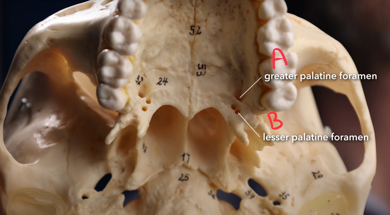 The greater and lesser palatine foramen