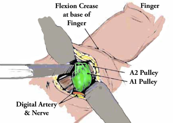 Describe your surgical technique of debridement and release of A1 pulley?