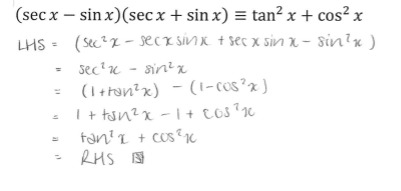 tan and sec pythagoream identity