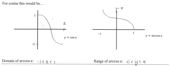 3) for arccos switch the domain and range around