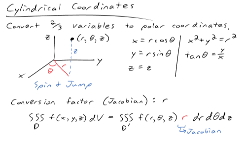 True or false: Cylindrical coordinates use (r, θ, z) to describe points.