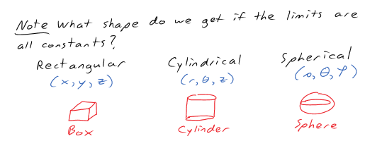 The volume element is represented as dV = dx dy dz.
