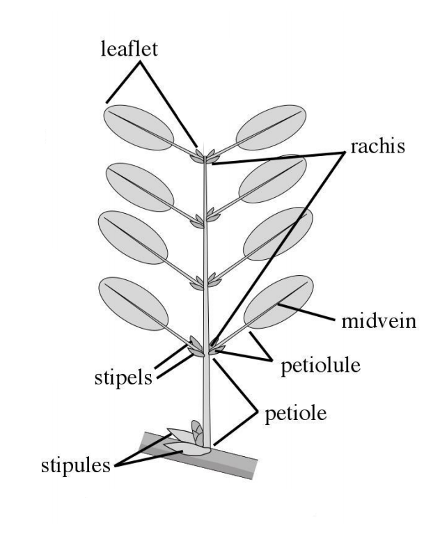 Draw and label a paripinnately compound leaf.