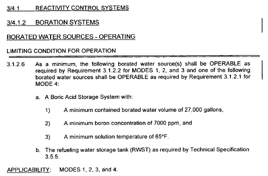 What borated sources of water must be available in MODE 1-4?
