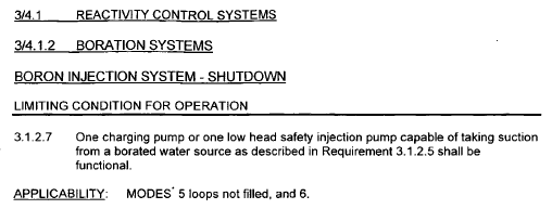 MODE 5 w/ RCS loops not filled