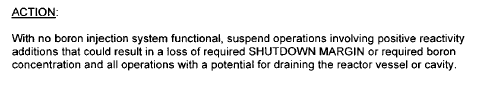 Suspend all Positive Reactivity Additions that could result in a loss of SDM or boron concentration [Immediately]