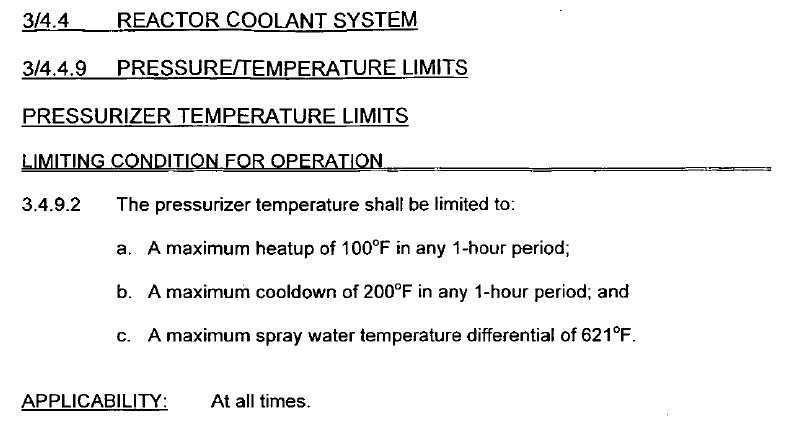 What is the PZR HUR, CDR, and Aux Spray ∆T Limits?