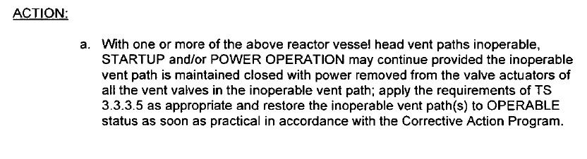 Continued S/U / Power operation may continue if valves in vent path are closed with power removed.