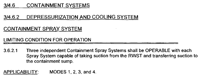 When is TRM 3.6.2.1 Containment Spray System Applicable?