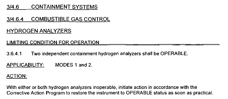 Only action is if ≥ 1 Hydrogen Analyzers nonfunctional, get it back as soon as practical.