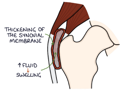 Pain on resisted movement indicates bursitis as the bursa tighten
