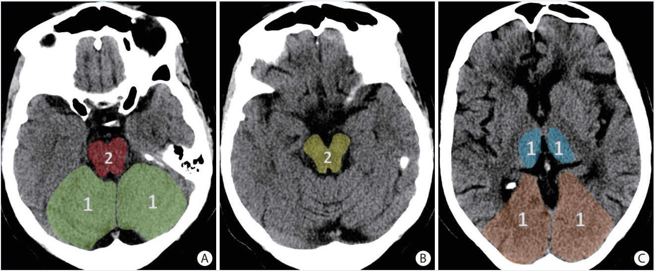 * Tálamos bilaterais (2 pontos: um para cada lado).