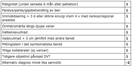 Först så gör man en ”Wells score” – vilket är ett poängsystem för att beräkna sannolikhet.
