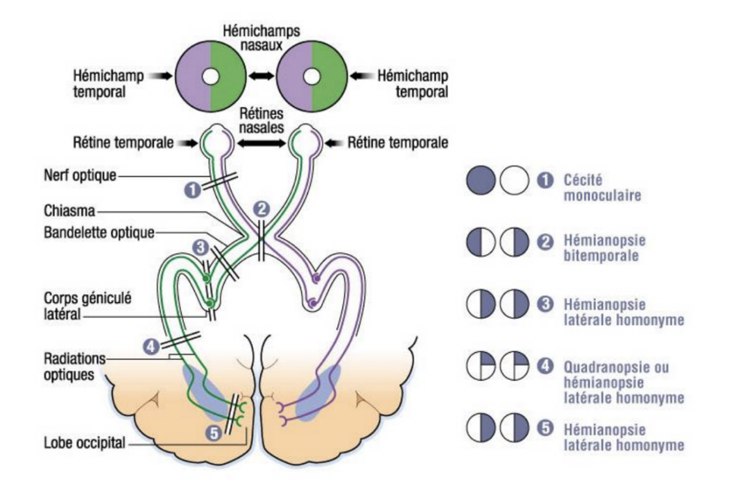 Troubles de vision: SCHÉMA DES VOIES VISUELLES + DÉFICIT CAUSÉ
