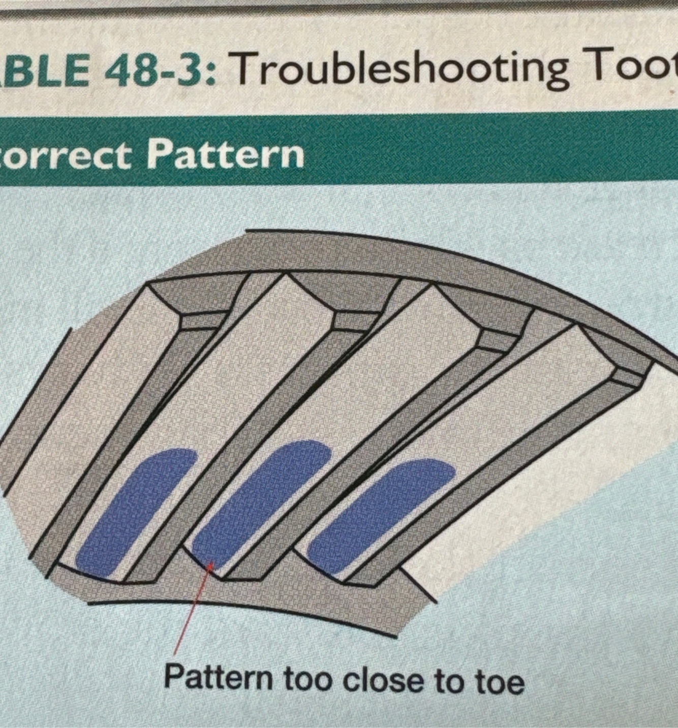 Pattern too close to edge of tooth toe