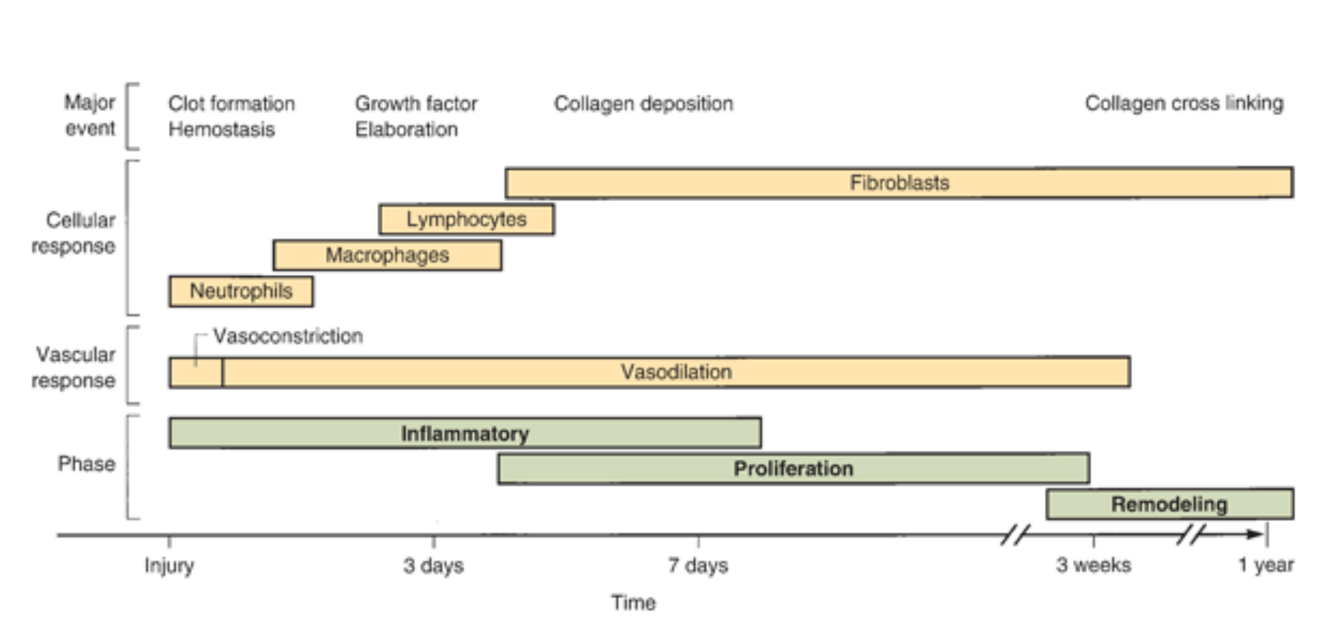 in what order do cell types show up in wound healing? approximate times?