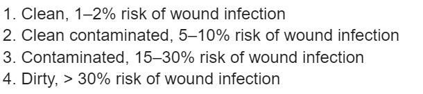 wound classes and their % chance of SSI