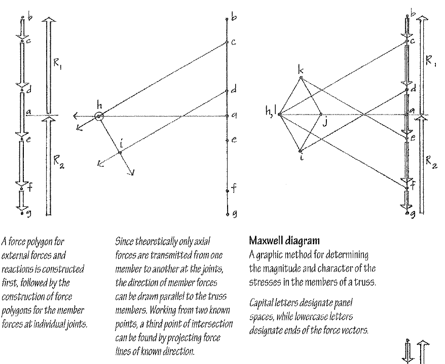 A graphic method for determining the magnitude and character of the stresses in the members of a truss.
