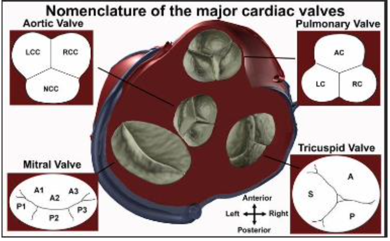 The tricuspid valve (TV) has a saddle shape because of anterior and posterior high points and mid septal and lateral wall low points.