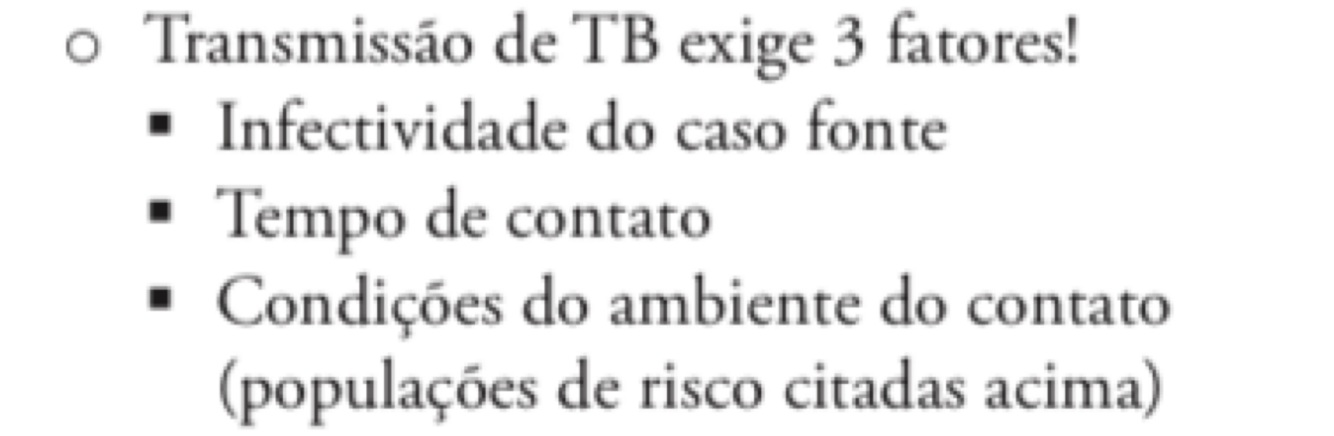 A transmissão da TB exige 3 fatores, quais são eles?
