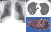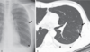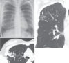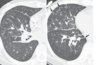 A: Consolidación heterogénea focal o parcheada que afecta los segmentos apicales y posteriores de los lóbulos superiores y los segmentos superiores de los lóbulos inferiores.
