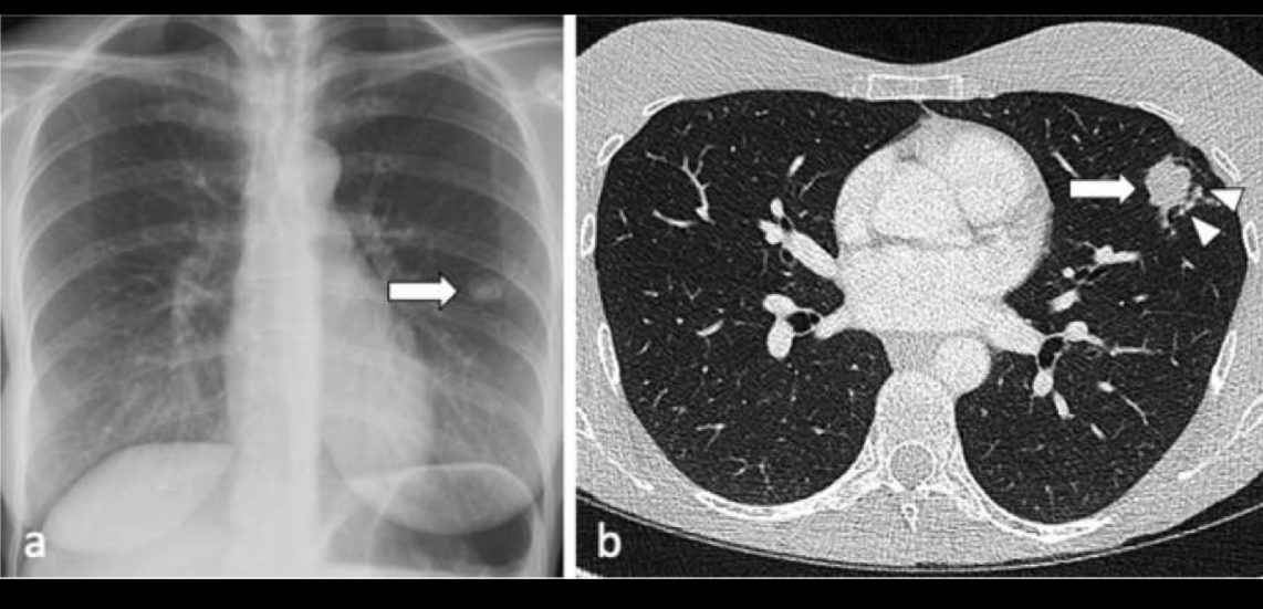 nódulo de ghon q se asocia a ganglios calcificados en mediastino