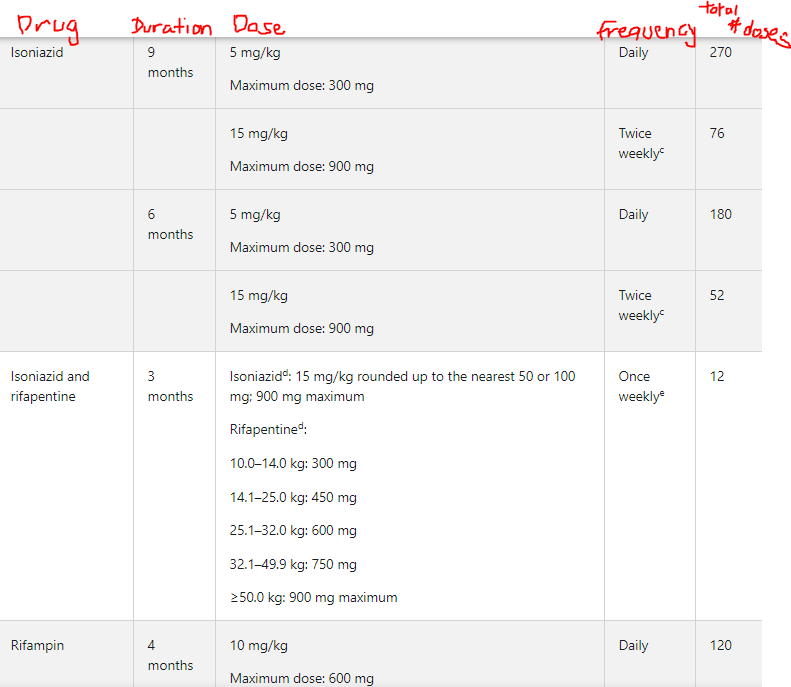 isoniazide and rifapentine weekly for 3 months under DOT (not recommended for HIV pt)