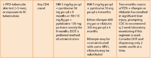 HIV positive pts recent contacts of known TB case nodular or fibrotic changes on CXR consistent with previously healed TB organ transplant recipient or other immunosuppressed pt
