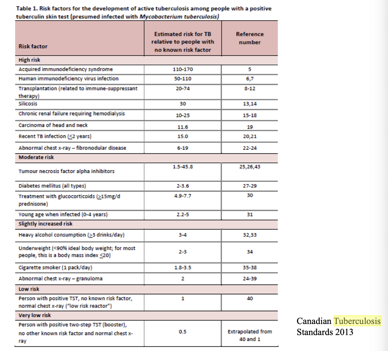 epidemiologic risk factors for active tb
