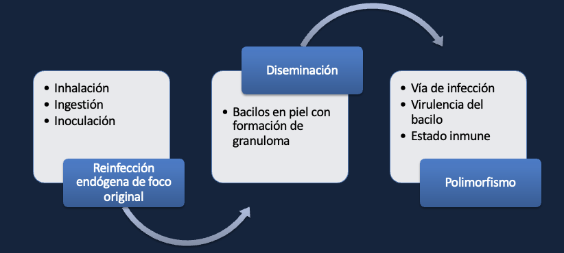 Chancro tuberculoso: cuando inicia, en quien, lesion inicial, diseminacion, curso